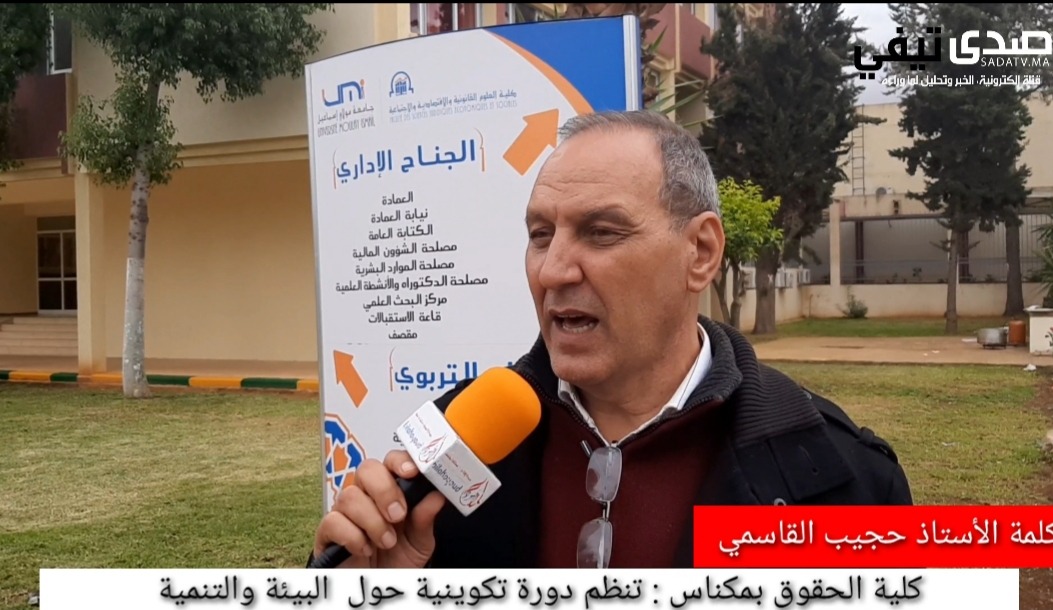 تصريح الأستاذ حجيب القاسمي حول الدورة التكوينية التي احتضنتها كلية الحقوق بمكناس حول البيئة والتنمية المستدامة نشر في 21 نوفمبر 2019 الساعة 22 و 00 دقيقة شارك FacebookWhatsAppTwitterالبريد الإلكترونيLinkedinطباعة شارك FacebookWhatsAppTwitterالبريد الإلكترونيLinkedinطباعة