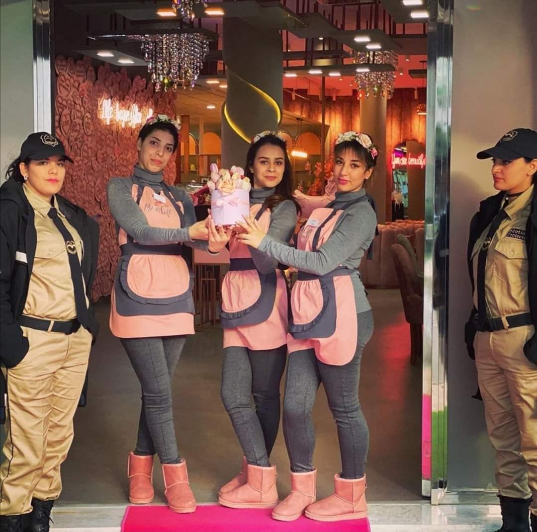 وكما تظهر الصور ، المقهى يعتمد فقط على الجنس اللطيف لخدمة الزبناء من نادلات وكذا حارسات الأمن بباب المقهى …